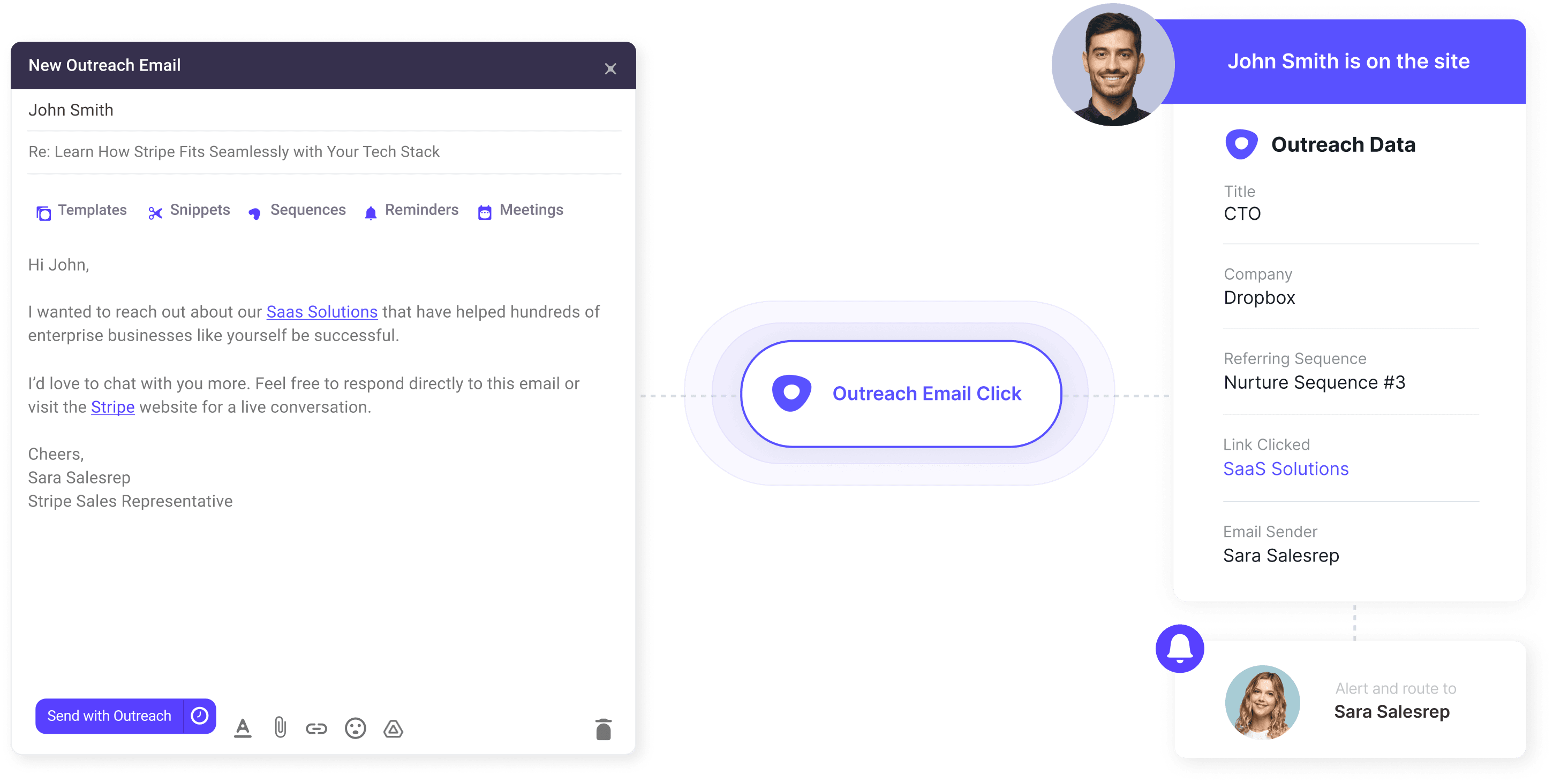 Engage prospects in real-time conversations the moment they click through an Outreach email sequence and arrive on your website.